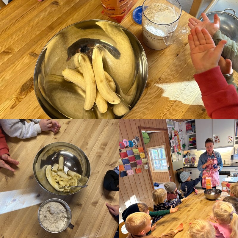 I stedet har vi laget bananbrød til FORUT-aksjonen, og barna har vært med i
