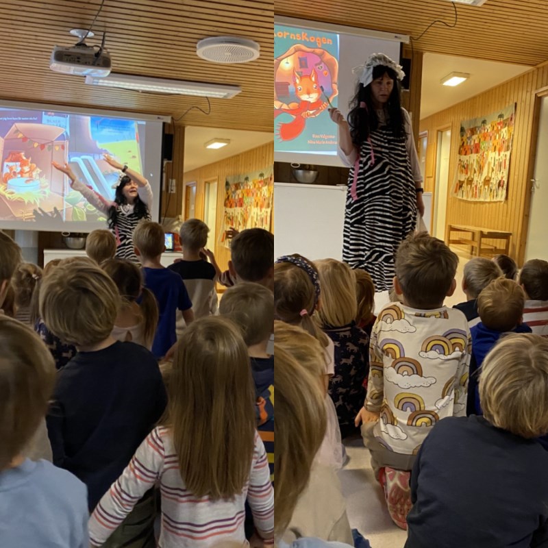Vi har hatt en fellessamling hvor “Prompeline” (Inga) fortalte og lærte barna