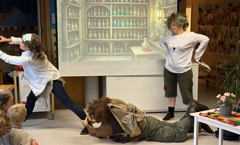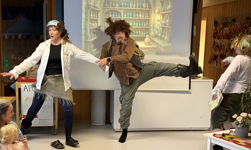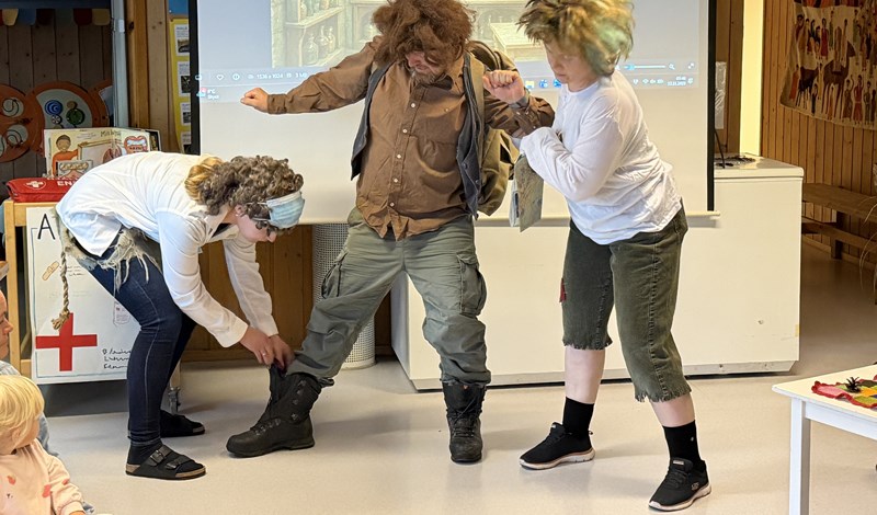 "Men pappa har sjumilsstøvler han altså - så det går KJEMPEFORT!" forklarer Tambar.