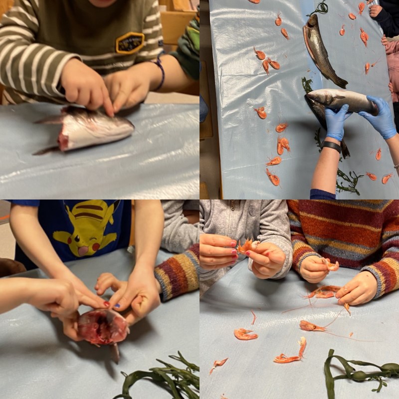 har sløyd fiskene og vist barna innholdet – barna var svært interesserte, og