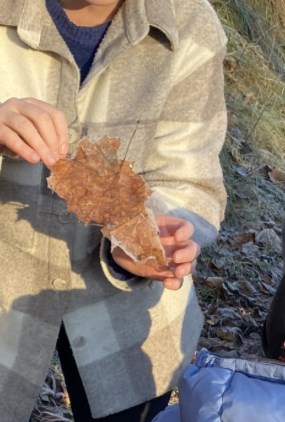 bakken. Vi har studert frost og rim på bladene, og barna har kommet med sine