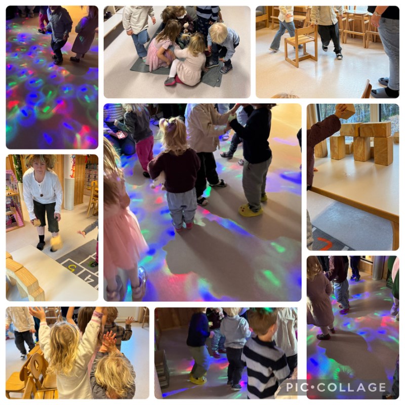 Vi startet måneden med å feire barnehagens bursdag. På hver avdeling var det organisert ulike bursdagsaktiviteter og vi gikk samlet avdelingsvis rundt til de ulike avdelingene for å leke. Det var «alle mann på dekk», «stolleken», «kaste på blink» og «danseleken».