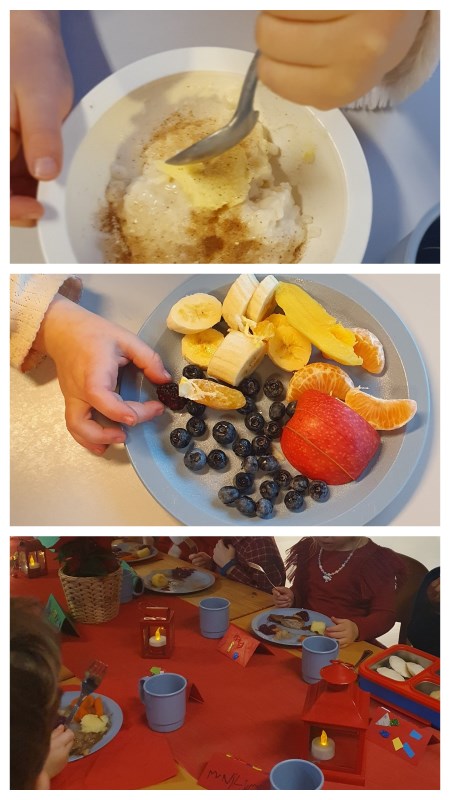 rundstykker som vi pleier, grønnsaker og frukt. 22. desember ble barna