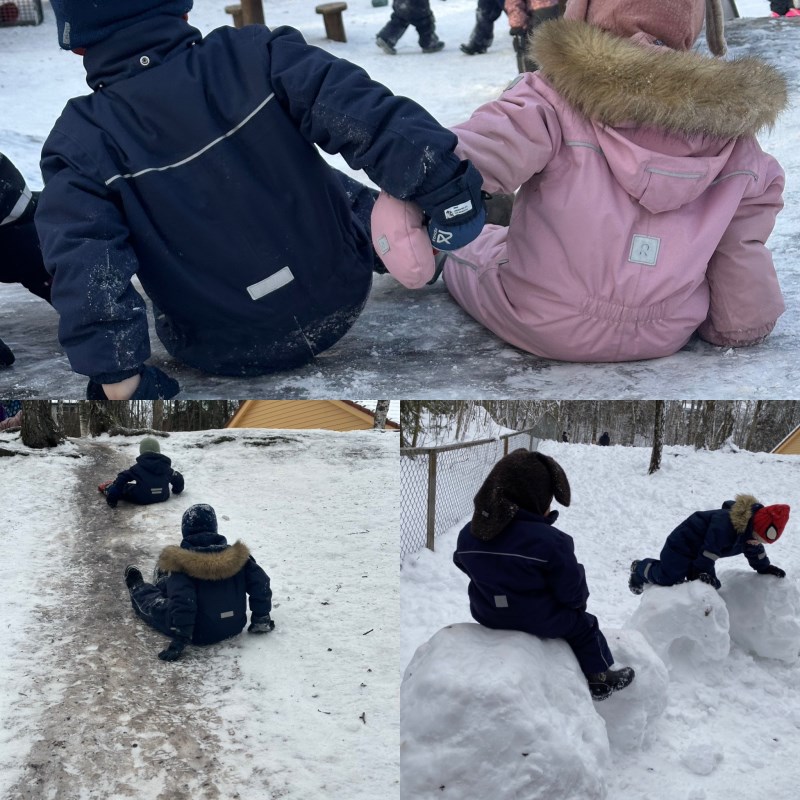 vinteren gjennom lek i snøen og turer i skogen. Barna får erfaring med å bruke