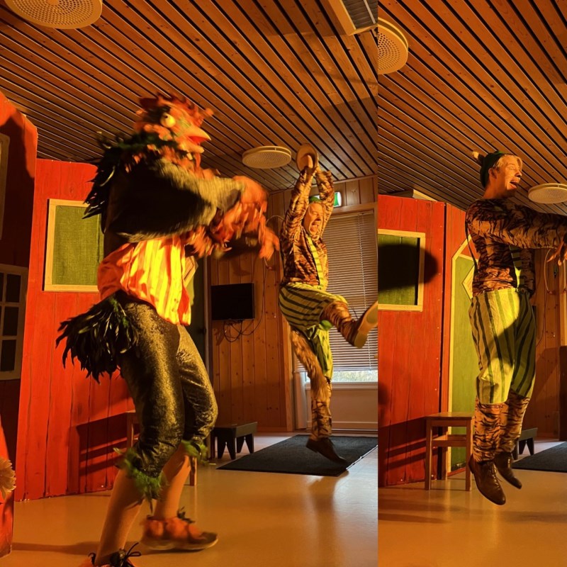 også besøk av teaterforestillingen «Gubben og katten og hanespetakkelet». Barna