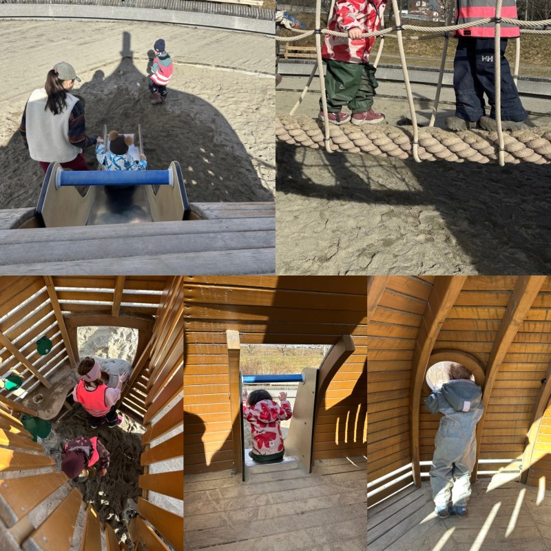 fikk lekeplassen helt for oss selv. Barna var i mye bevegelse, noe som er
