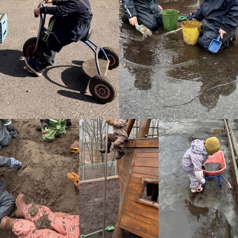 som kaker og supper, samt elver og landskap i sandkassen. Uteleken utviklet seg