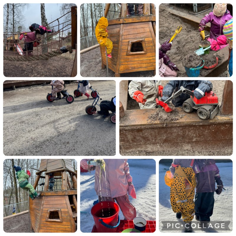 Vi har hatt varierende temperatur, fra overraskende varme dager til kaldere dager igjen. Dette gir god øvelse i å lære seg hvordan å best kle seg for å ha det bra ute. Vi er ulike, og trenger dermed ulik mengde klær på oss for å være komfortable og ha det bra. Vi fortsetter å øve med barna på å kjenne etter selv hva de trenger av klær etter vær og temperatur. Det er ofte en smitteeffekt dersom et par tar av seg jakka, da vil gjerne alle ta av seg jakka. Da handler det om å lære å kjenne sin egen kropp og hvor varm/kald man selv er, og å huske på å kle på seg igjen dersom man blir kald.