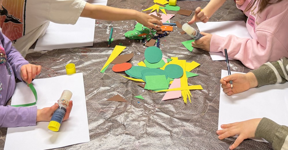 Vi fikk lekt oss ulike former som vi limte på ark for å lage oss vårt eget