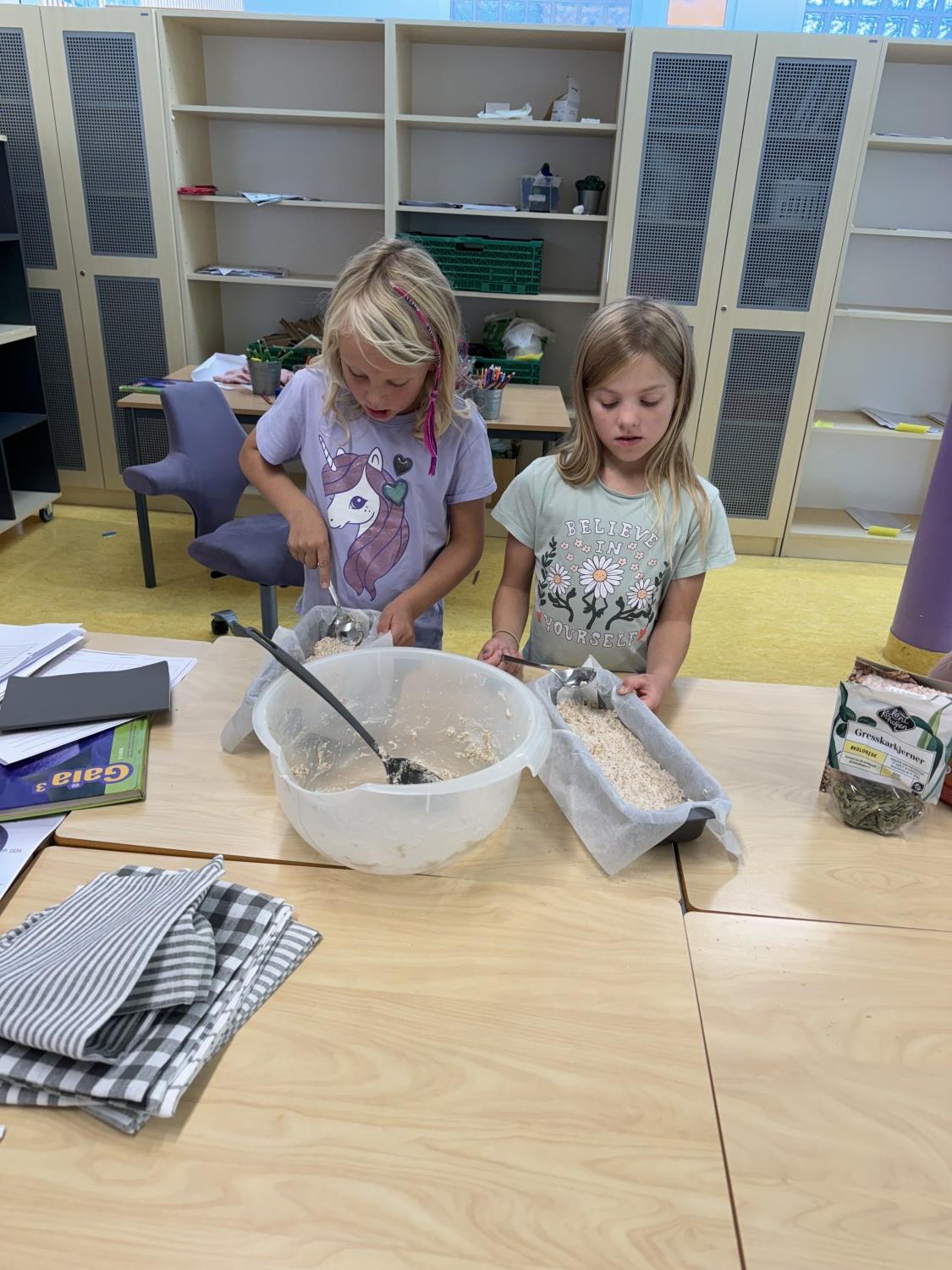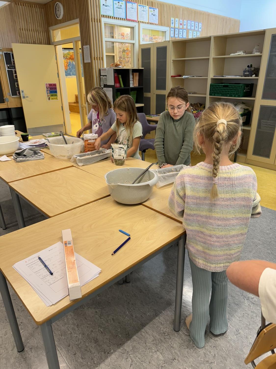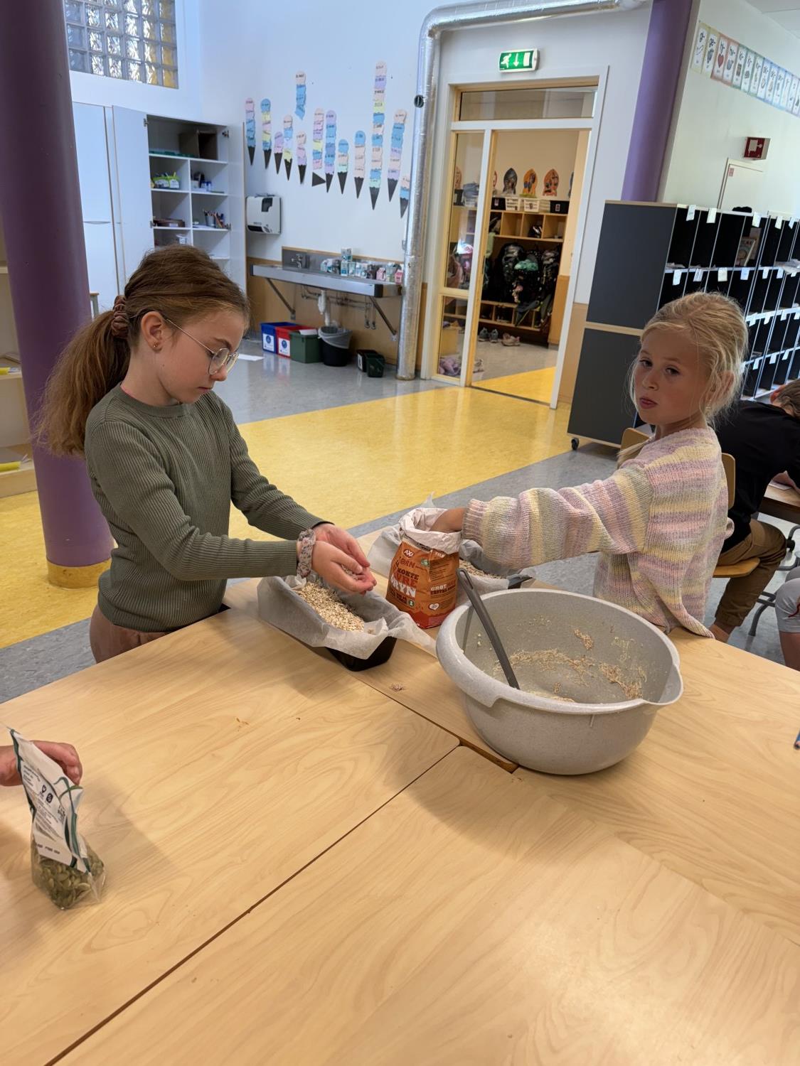 Forrige uke laget de kjøleskapsgrøt til alle og denne uken har de laget brød som de hadde på trinnet.