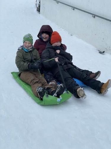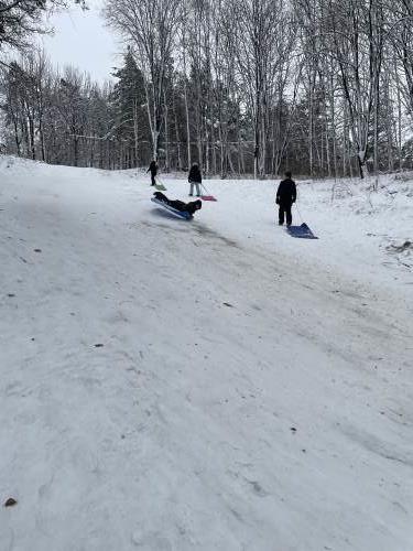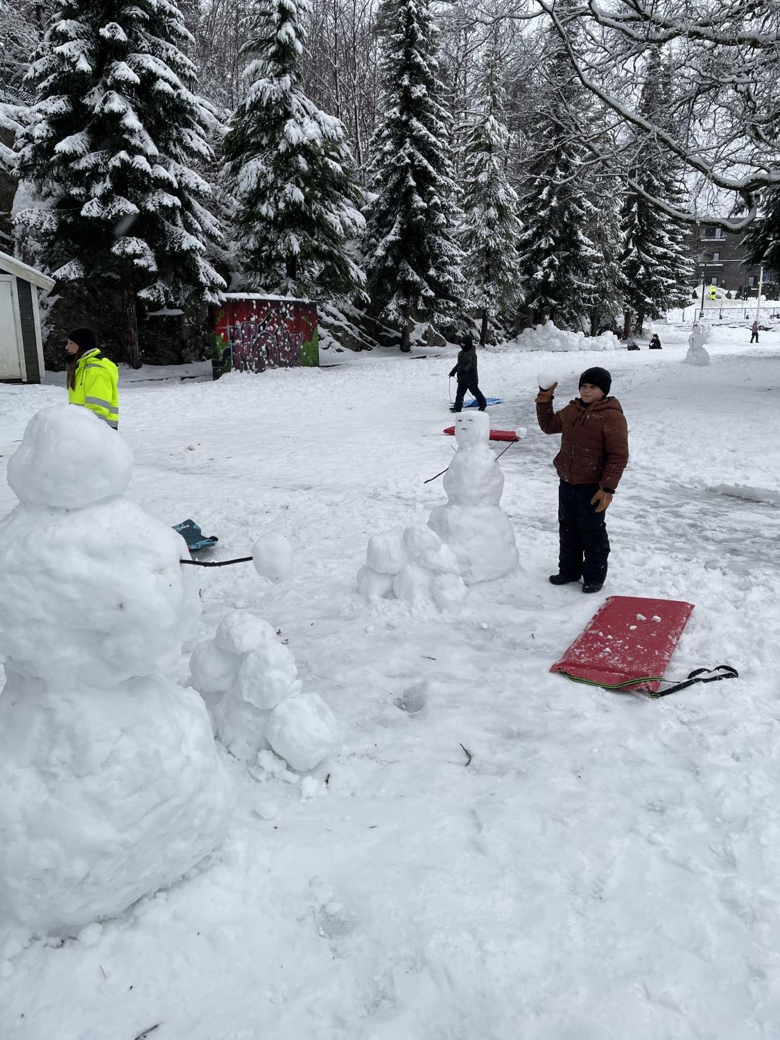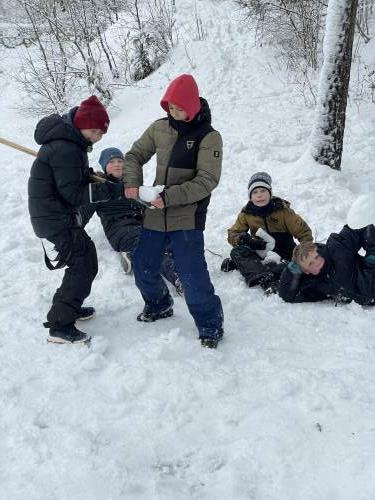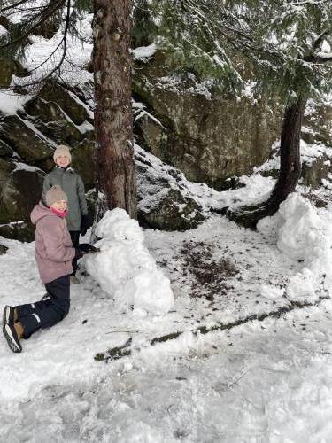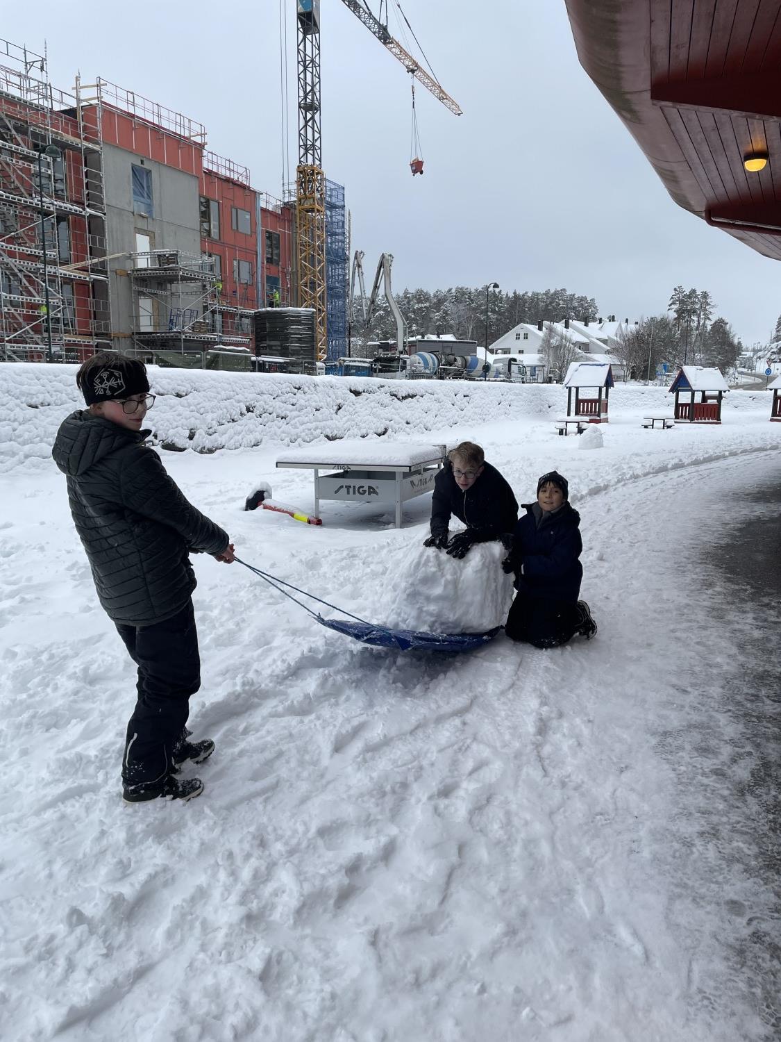 Tre flotte timer ute i snøen med masse leking, graving, bygging og aking.