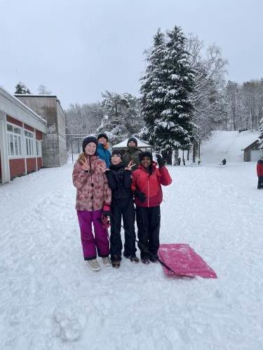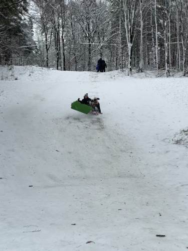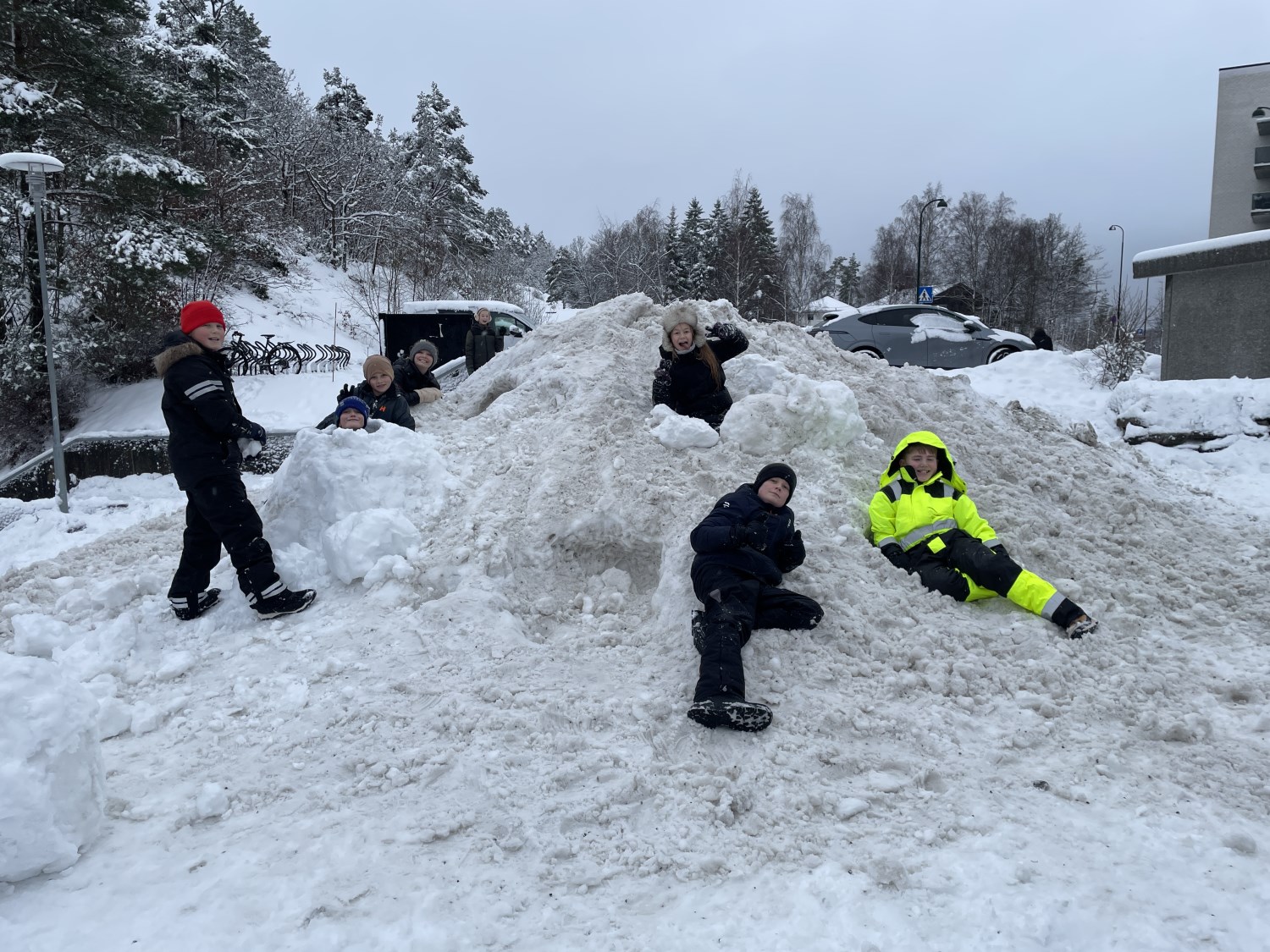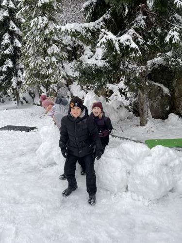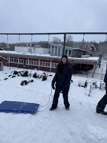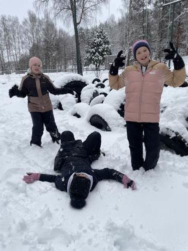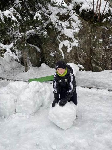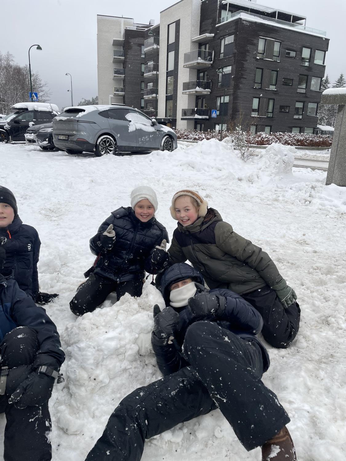 Tre flotte timer ute i snøen med masse leking, graving, bygging og aking.