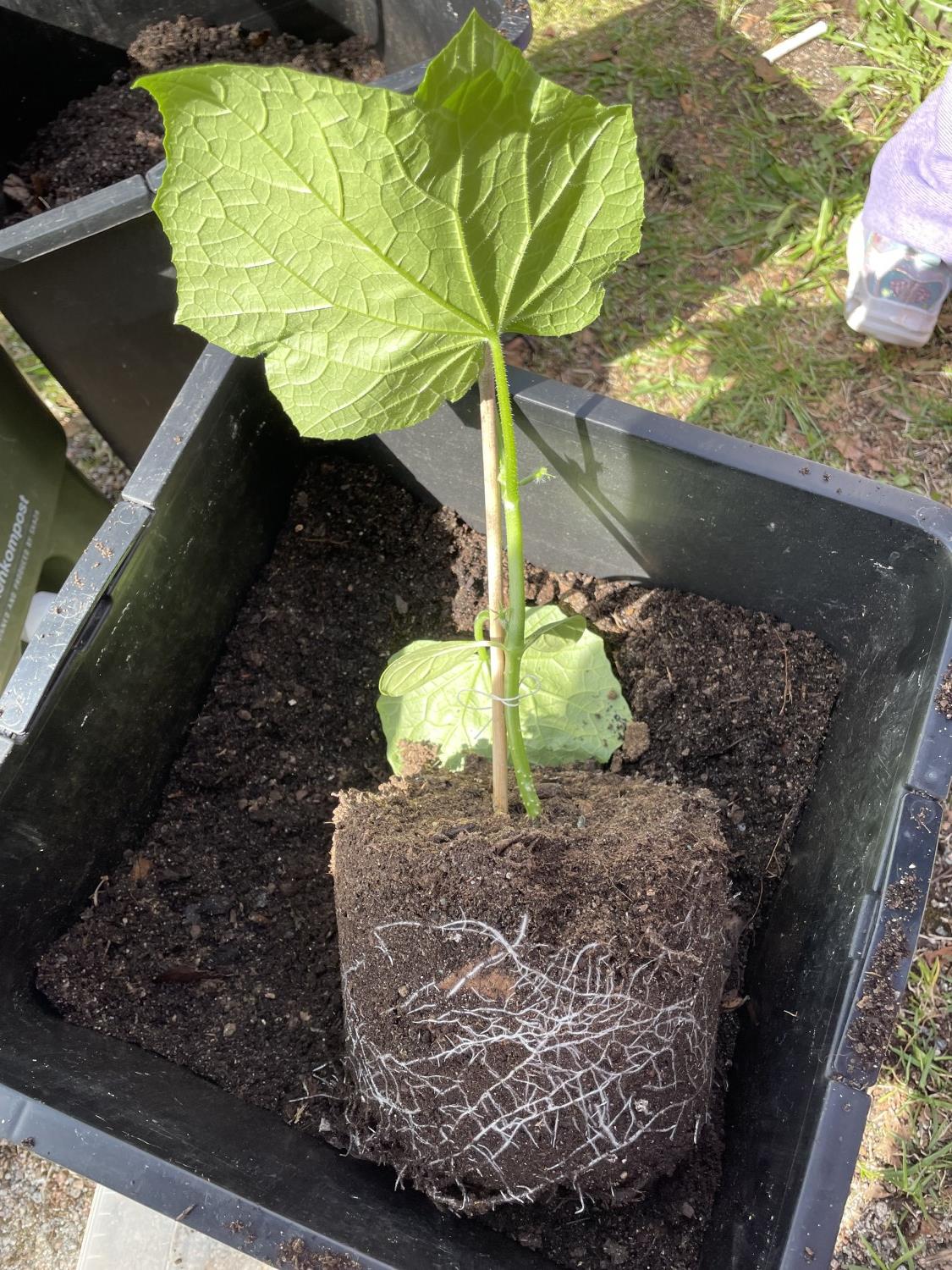 Agurkplantene vokser!